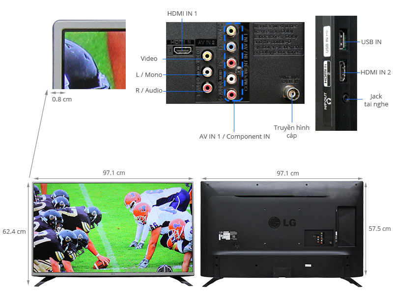 - Kích thước có chân/đặt bàn (Dài x Cao x Dày): 97.1 x 62.4 x 19.8 (cm)